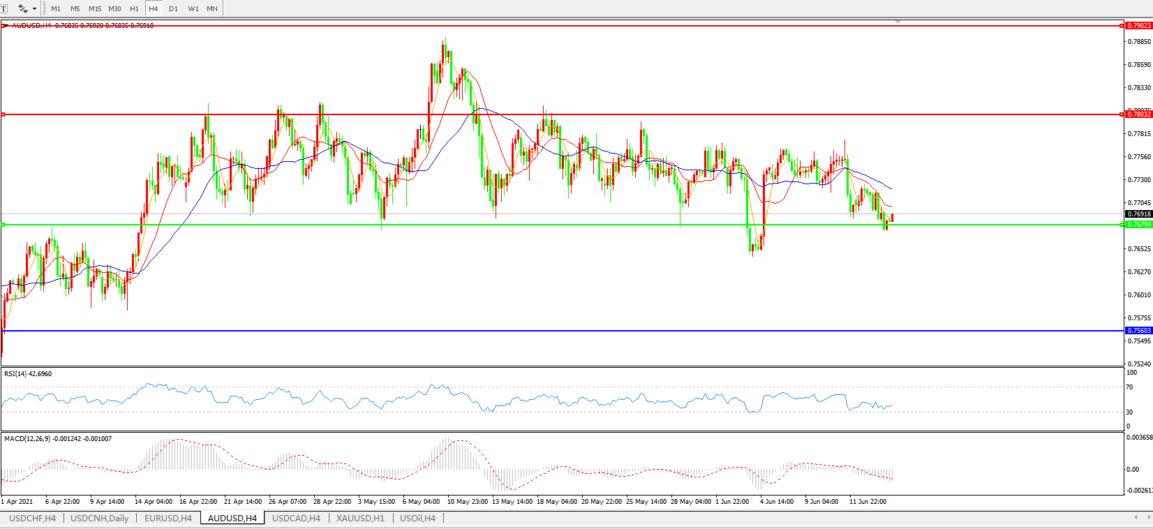 AUDUSD 4小时图: