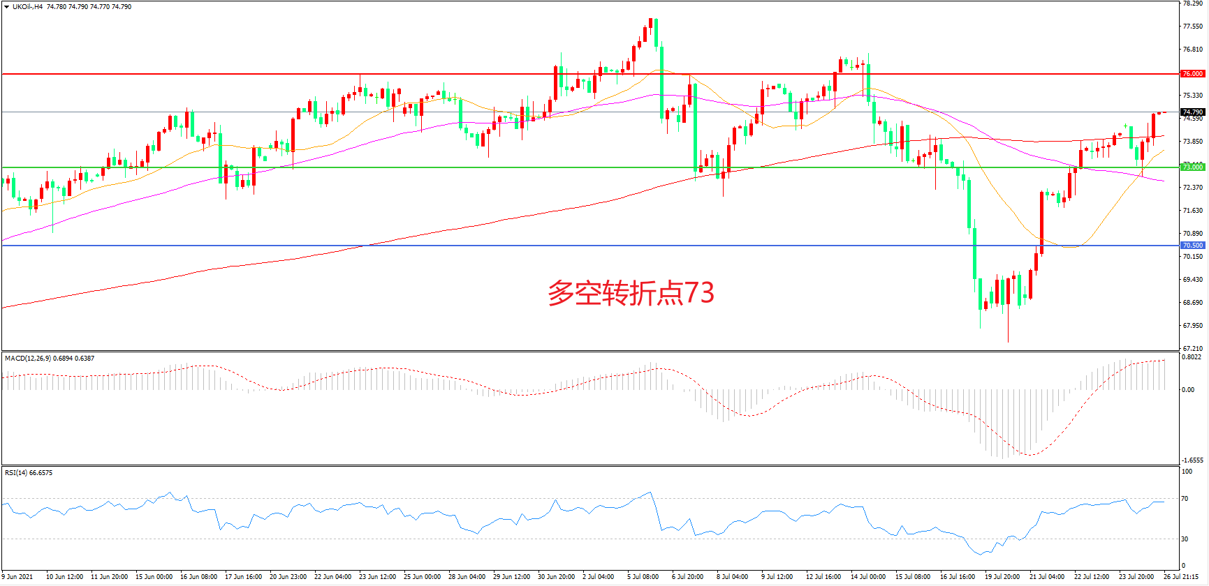 交易策略:在73.00之上看涨,目标76.00 79.00