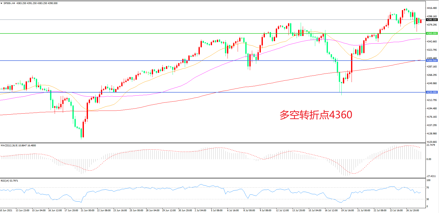 备选策略:在4360.00之下看跌,目标4300.00    4230.00