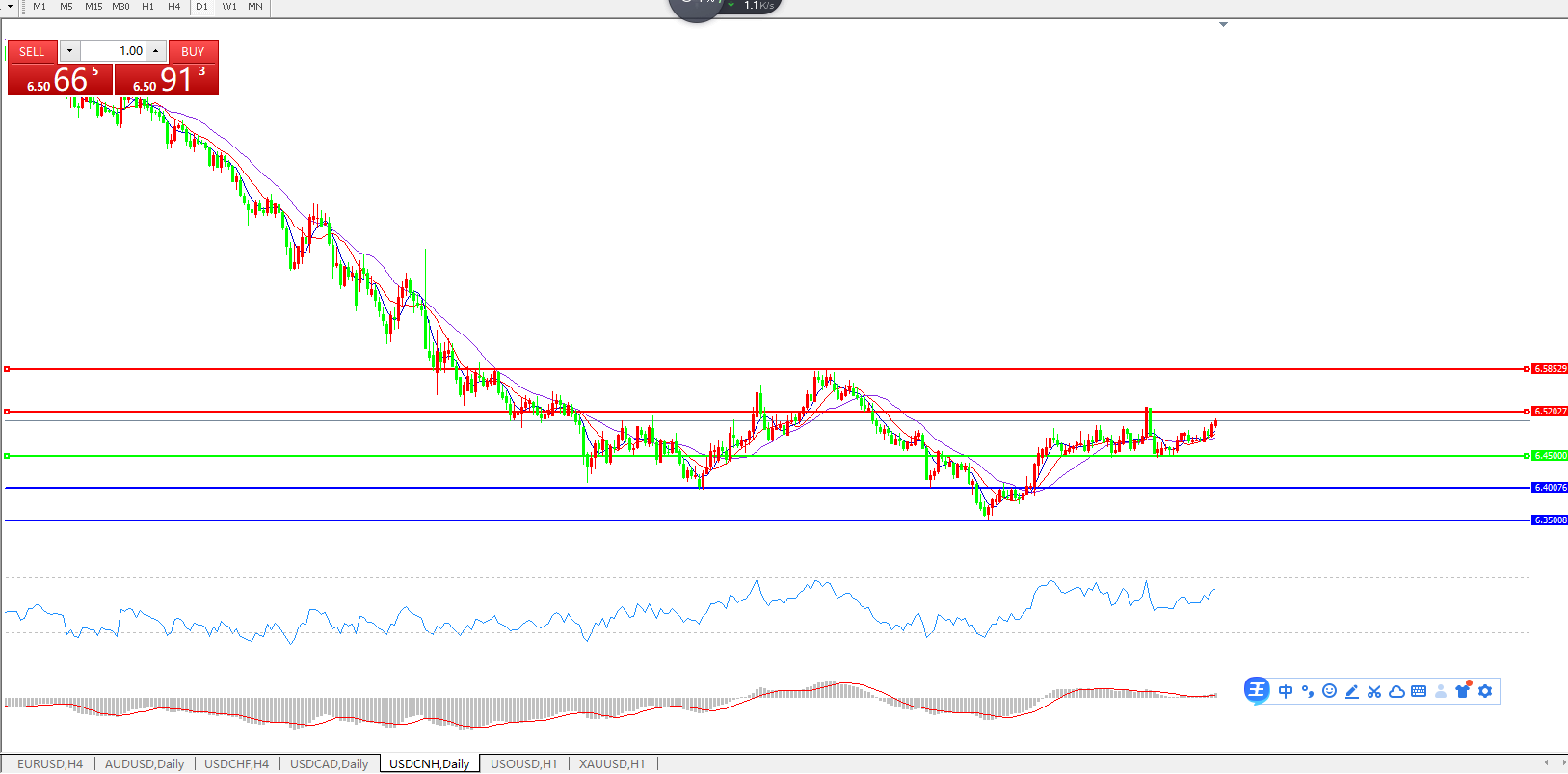 阻力位: 6.5200 6.5850