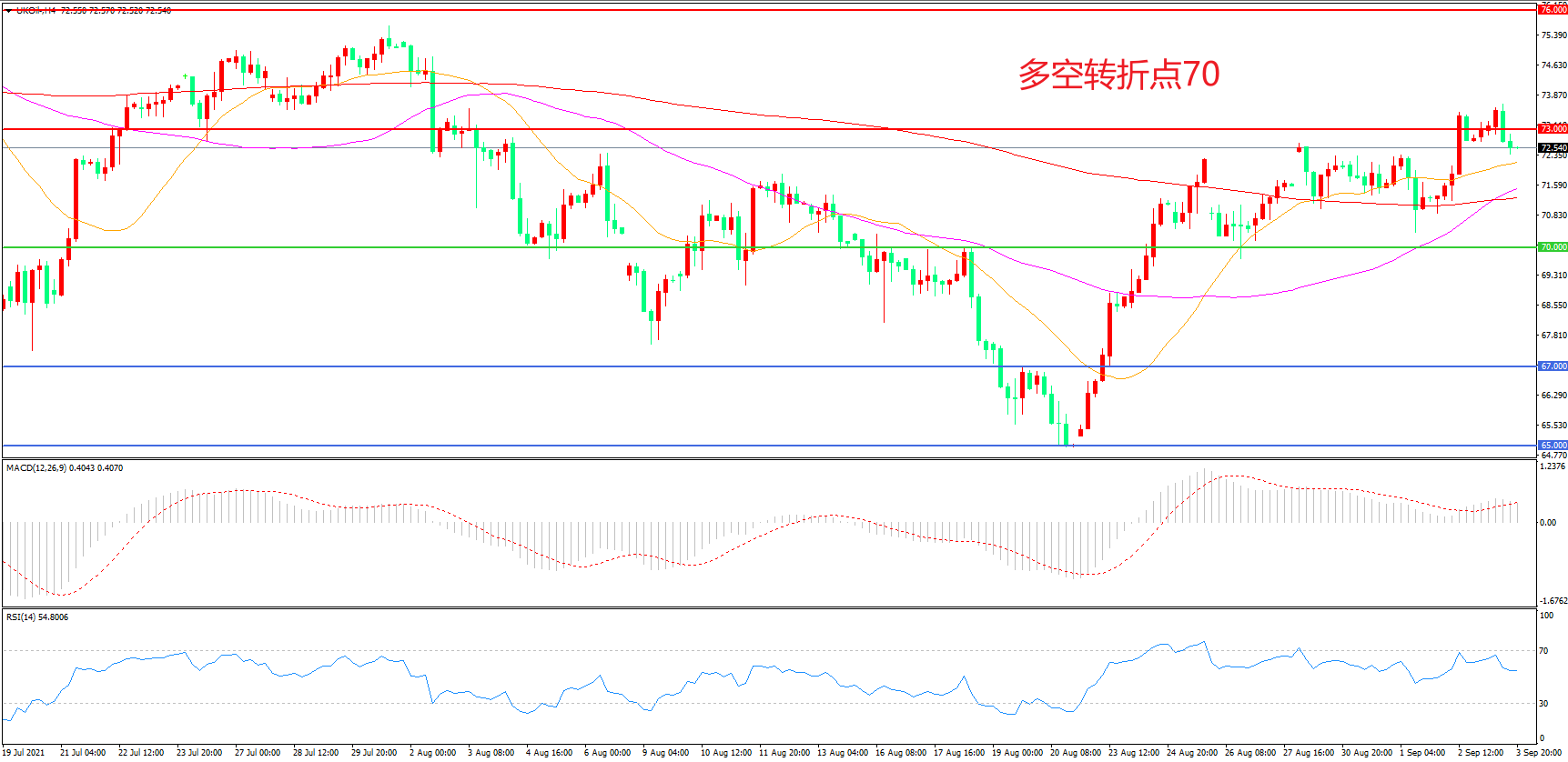 交易策略:在70.00之上看涨,目标73.00               76.00