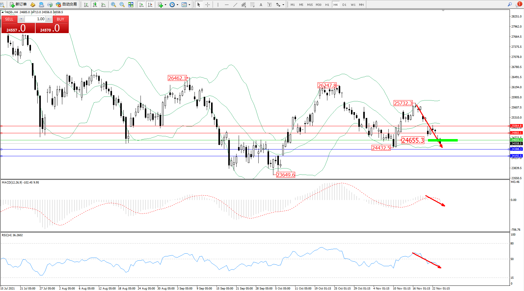 交易策略:24655下方看跌,目标24388、24192