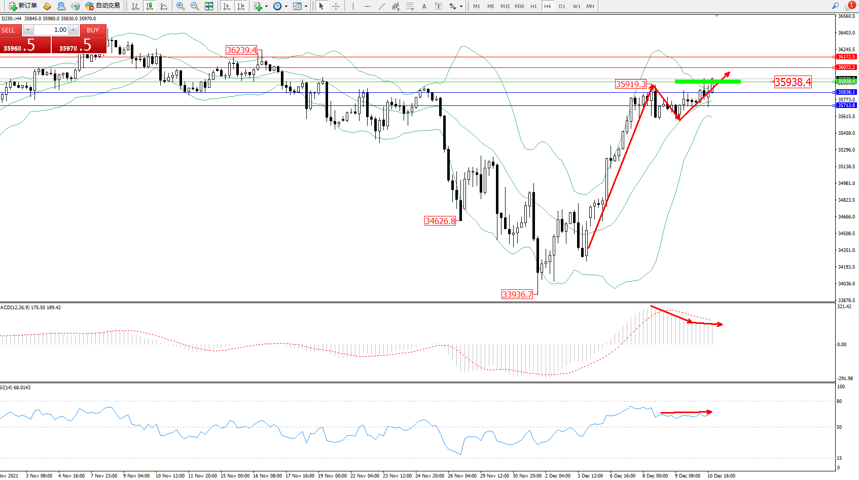 交易策略:35938上方看涨,目标36072、36172