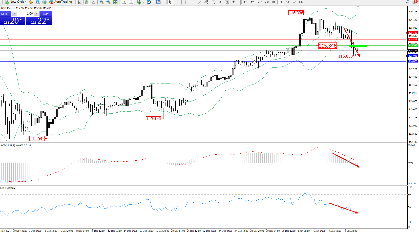 交易策略:115.346下方看跌,目标115.033、114.870