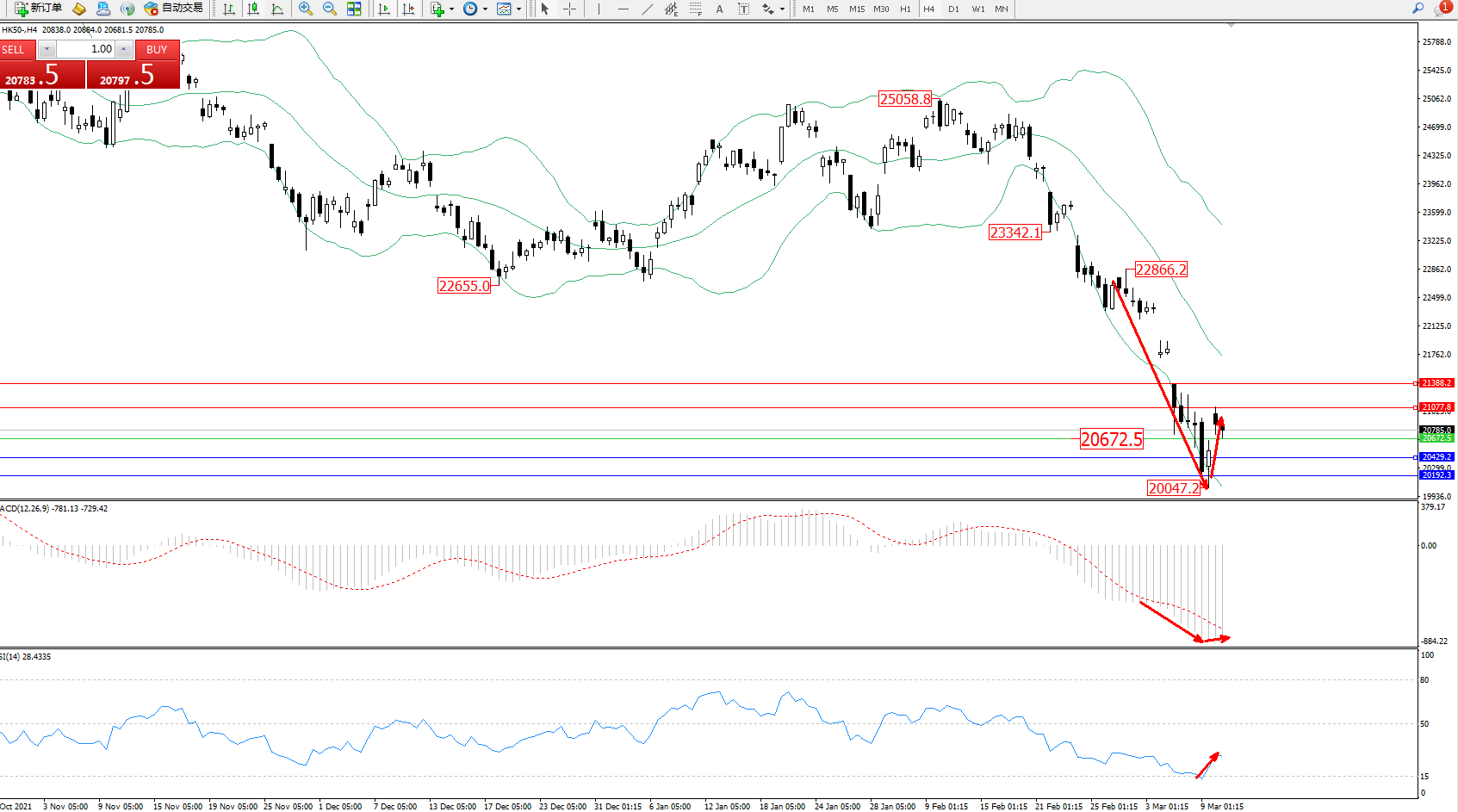 技术点评:空头动力延续布林带指标下轨附近持续下挫,低位抵达20047位置得到支撑反转上移,短期多头动力有上移迹象,布林带指标呈向下移动趋势良好,MACD指标处于空头区域维持整理中,RSI指标处于空头区域下行至超卖区15均衡线附近节点后快速拉升;