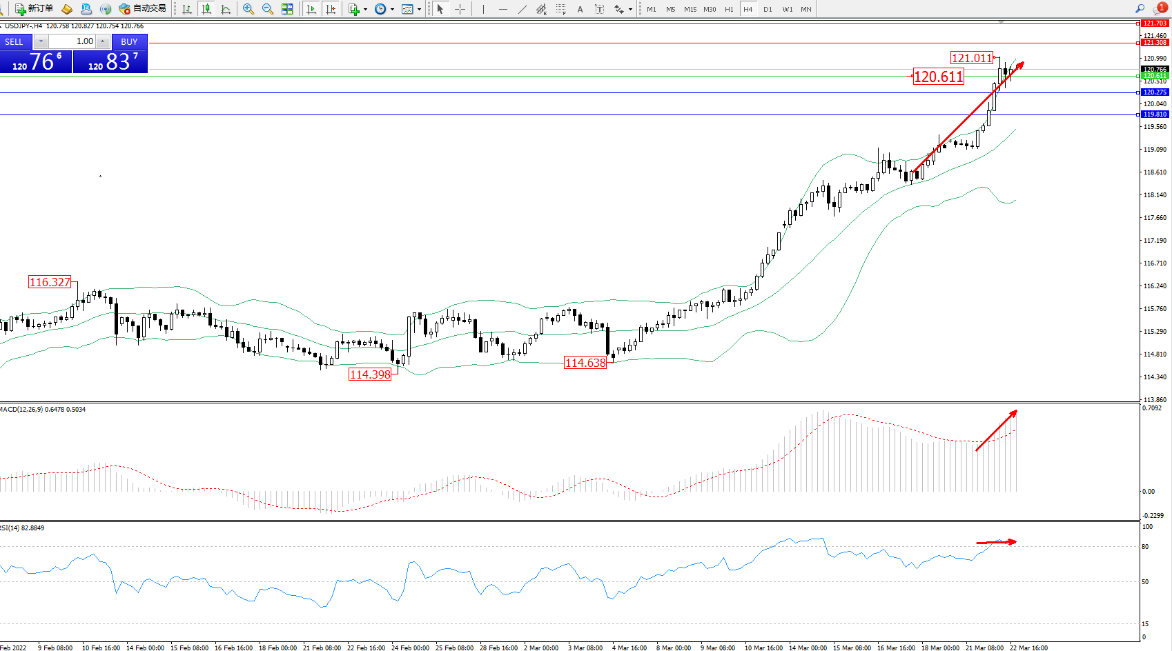 美元兑日圆维持120.766附近震荡,日元兑美元跌至六年低点,因为投资者对美联储更大举加息的预期升温,凸显出美国和日本在货币政策和债券收益率方面的政策分化。日元自2016年2月以来首次跌至120,美联储主席鲍威尔周一表示,准备必要时在下次会议上加息0.5%。相比之下,日本央行行长黑田东彦上周五则称,即使通胀继续加速,也将继续坚持宽松政策。Aozora Bank外汇产品经理Akira Moroga表示,“美债收益率在鲍威尔讲话后上升,黑田东彦似乎认识到当前日元疲软,以及油价持续走高加剧对日本贸易逆差的担忧,这些都是日元卖盘的理由。”