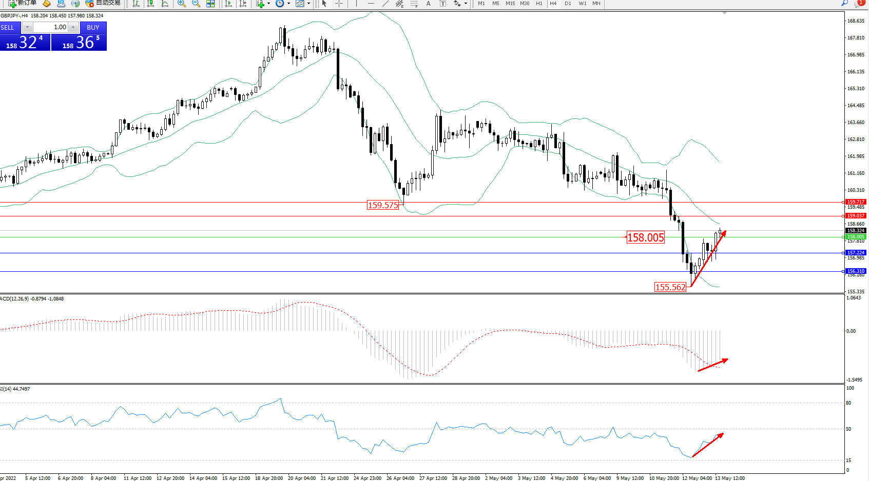 多空转折点:158.005