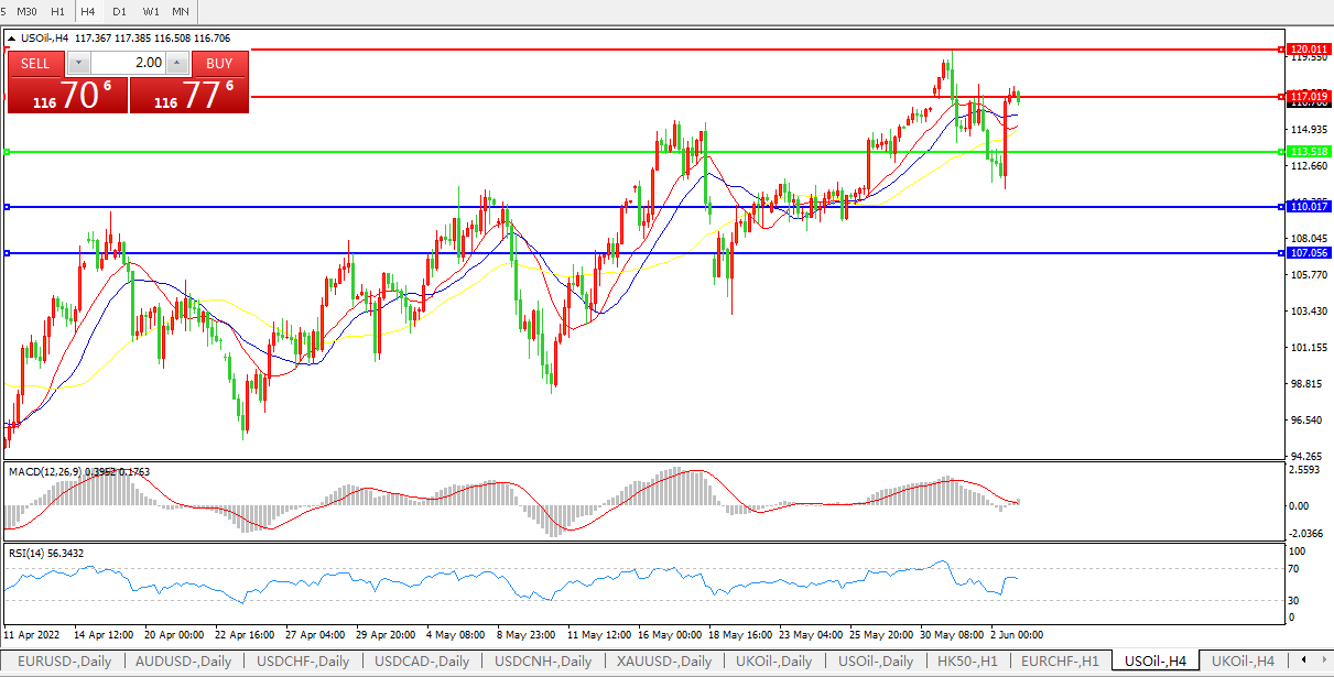 美国原油USOIL 4小时图