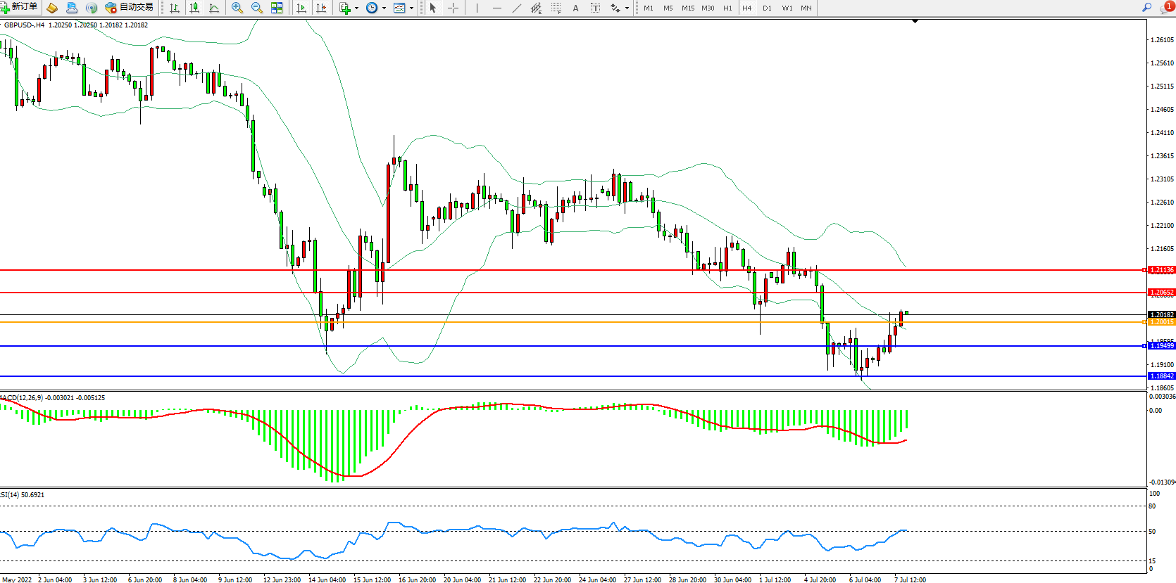 交易策略:1.20015上方看涨,目标1.20652、1.21136