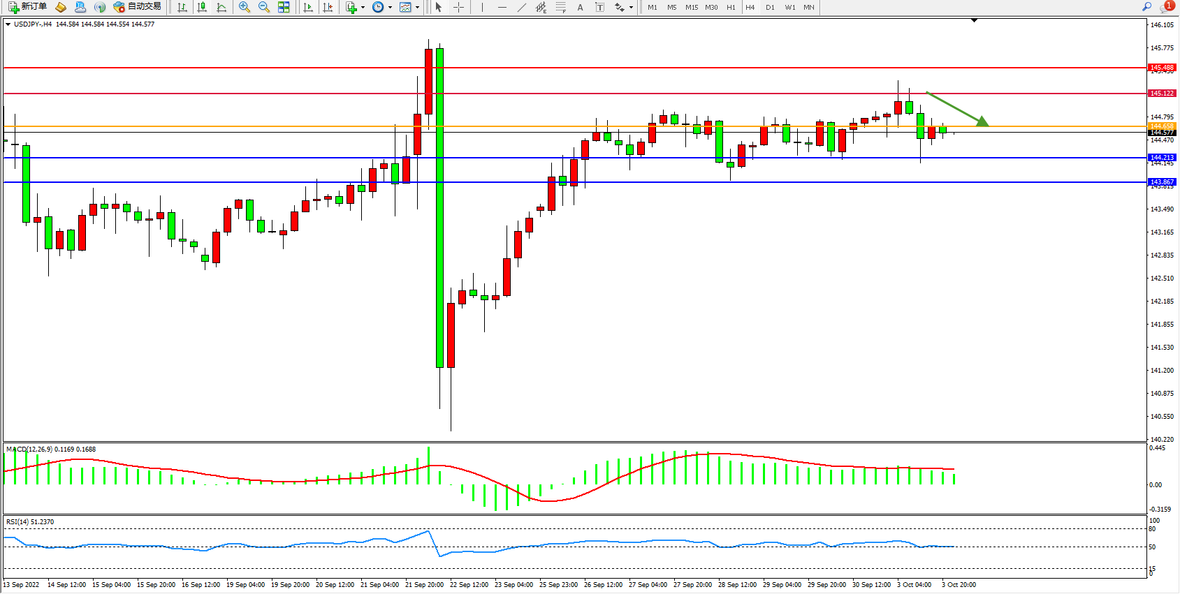 美元兑日圆维持144.577附近震荡,日本首相岸田文雄:将从疲软的日中寻求利益,并将其返还给公众。将利用弱势的日强化经济结构。入境游客的消费目标是5万亿日元。