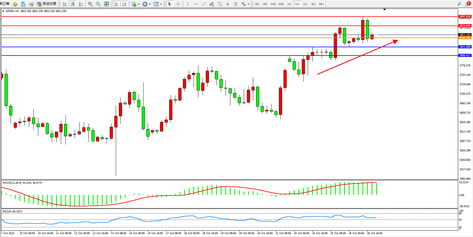 标普SP500——4小时K线图显示: