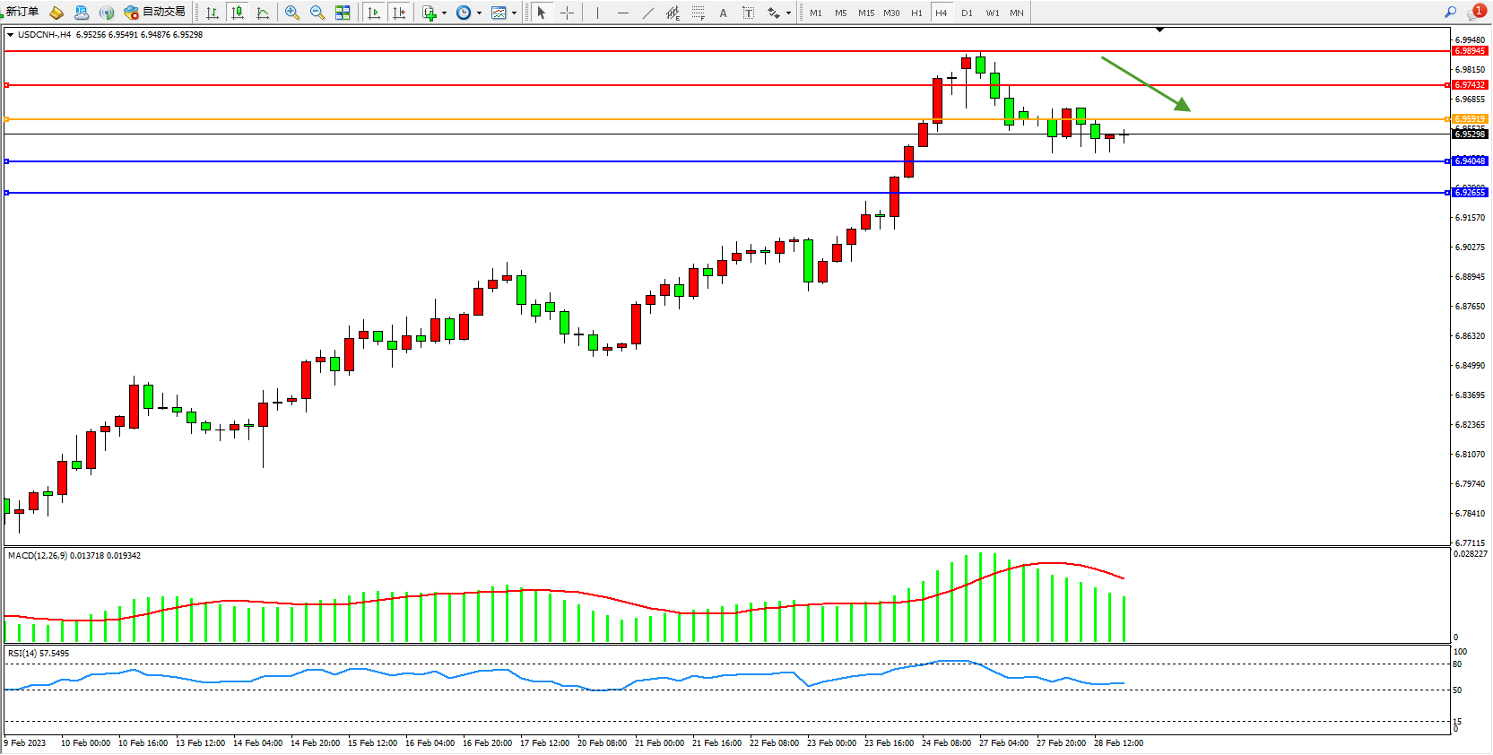 交易策略:6.95919下方看跌,目标6.94048、6.95655