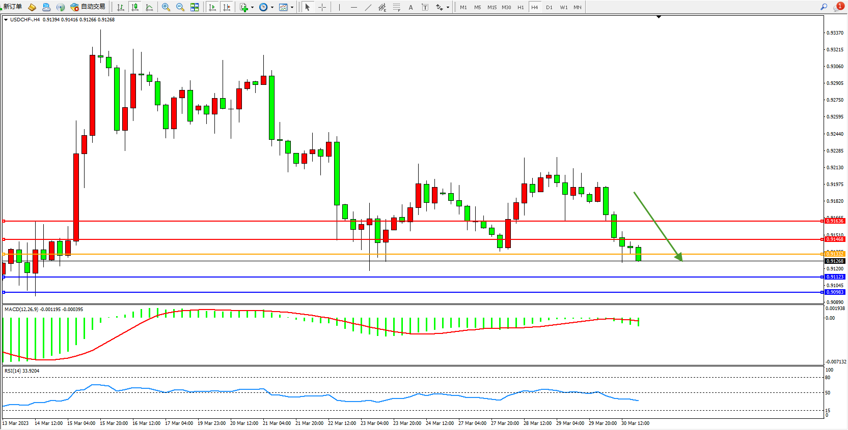 美元瑞郎USDCHF——4小时K线图显示: