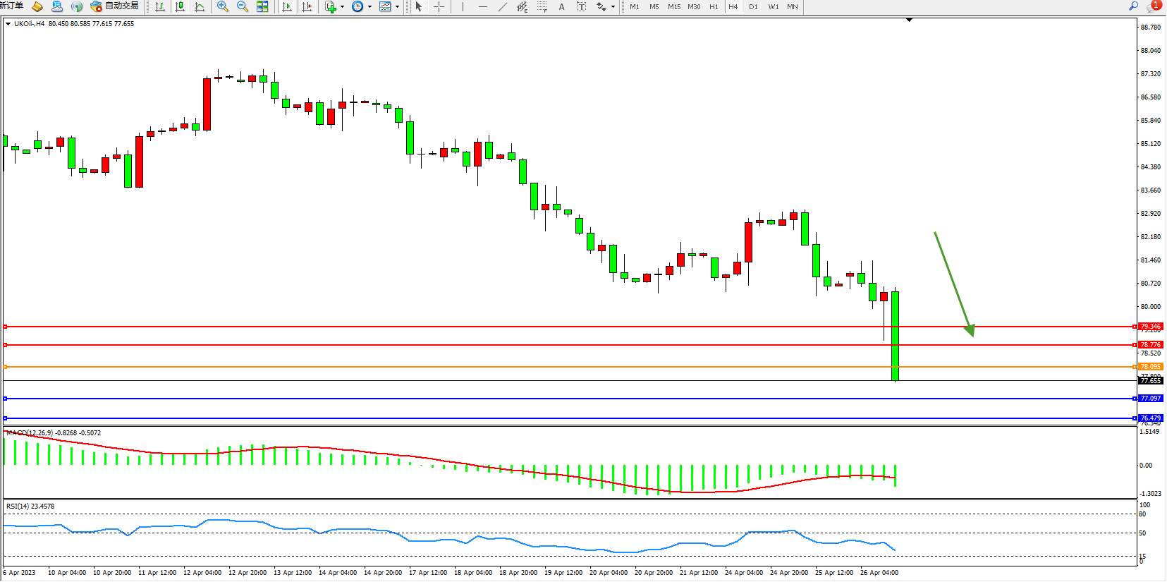 布油UKOil——4小时K线图显示: