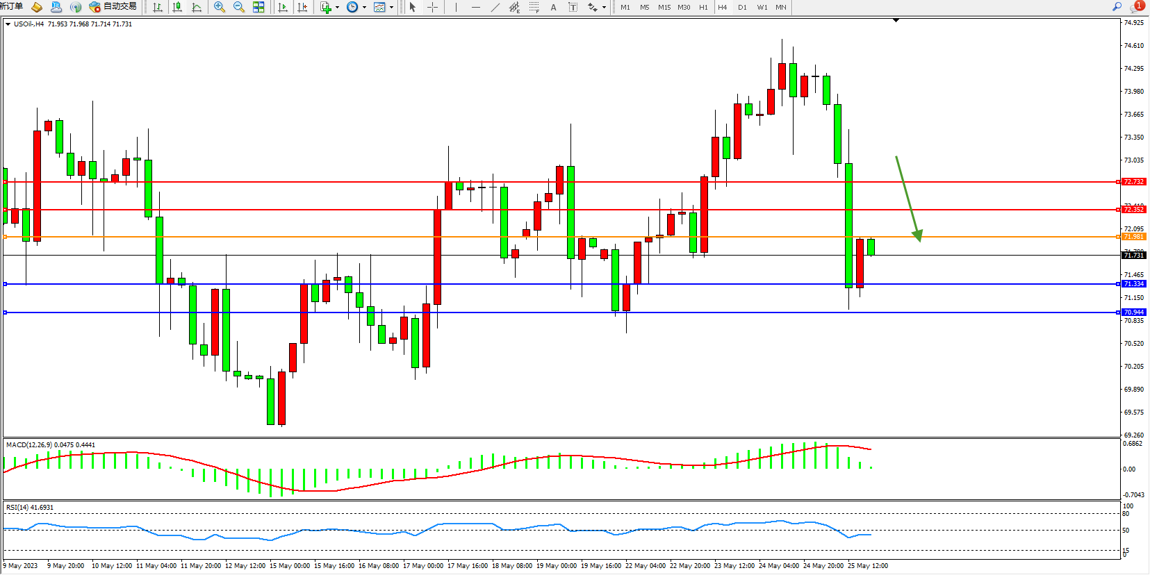 交易策略:71.981下方看跌,目标71.334 70.944