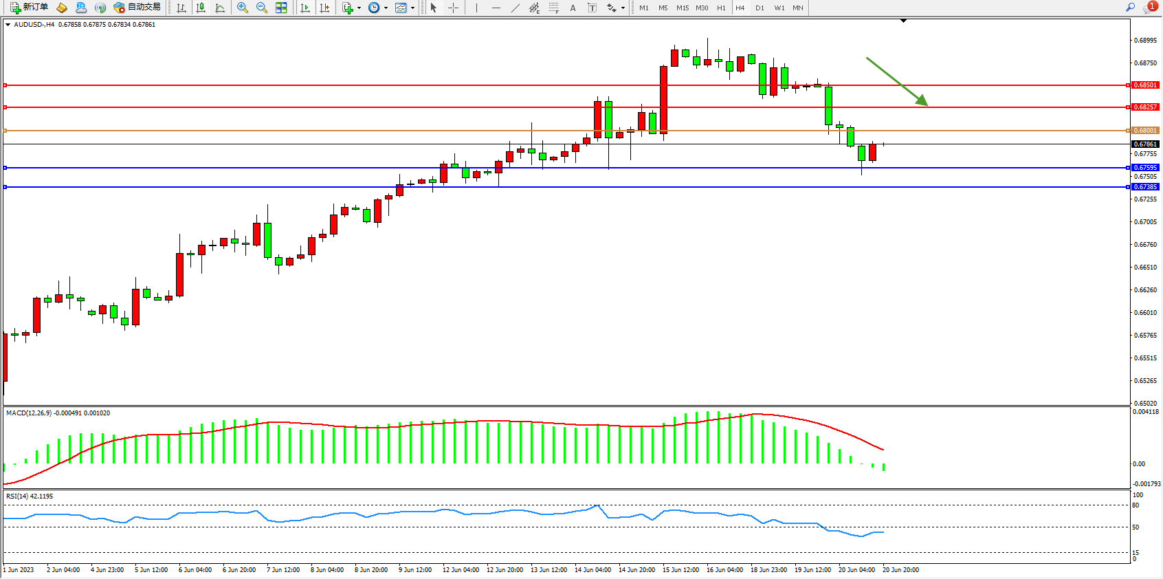 阻力位:0.68257  0.68501