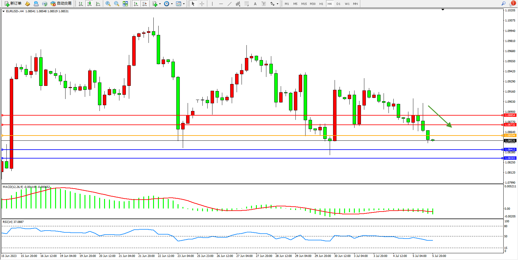 交易策略:1.08594下方看跌,目标1.08413 1.08303