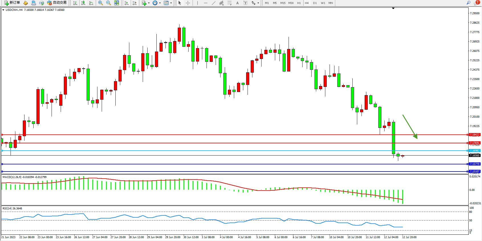 USDCNH:低位下挫 USDCNH  HKDCNH