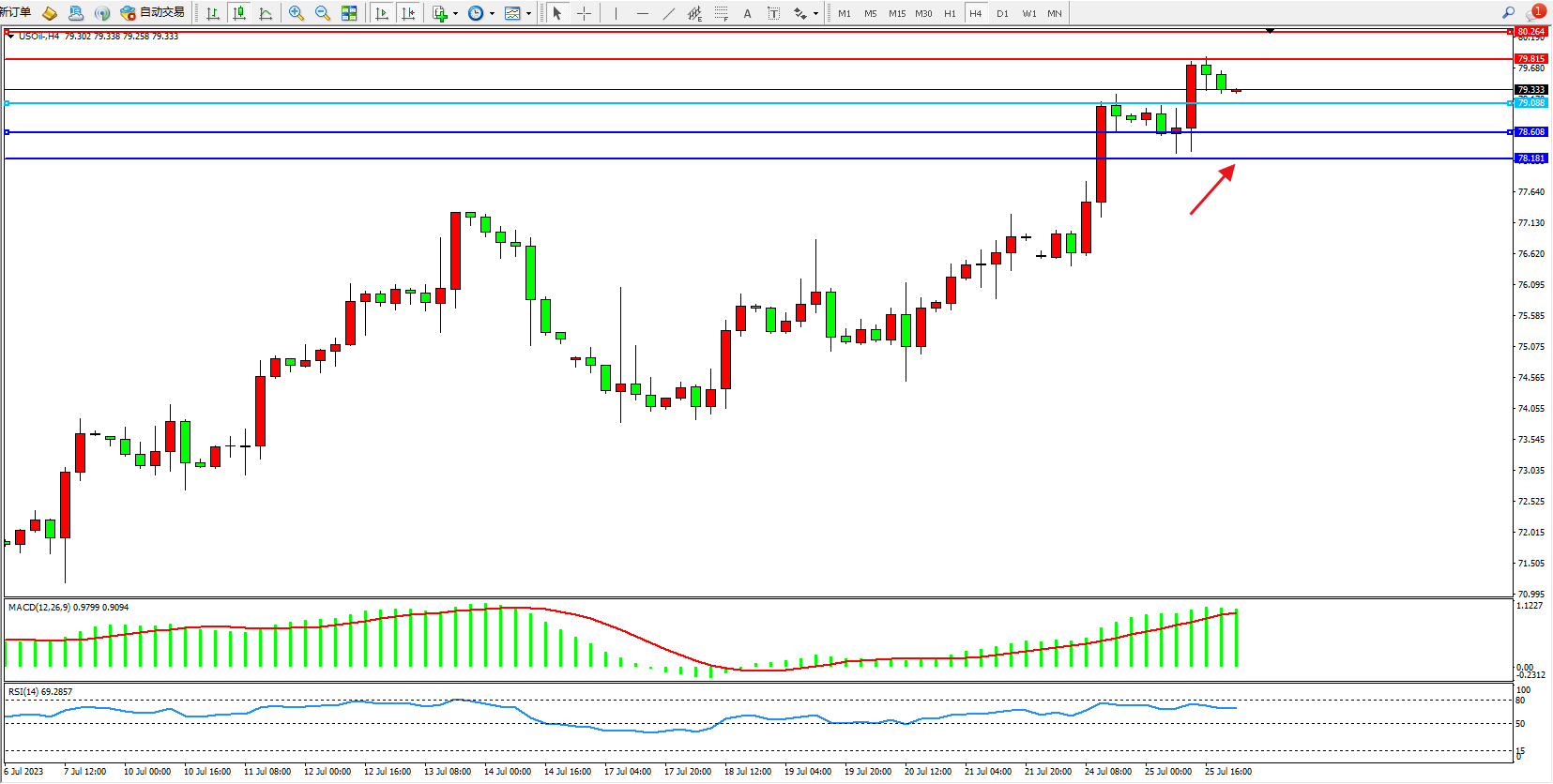 交易策略:79.088上方看涨,目标79.815  80.264
