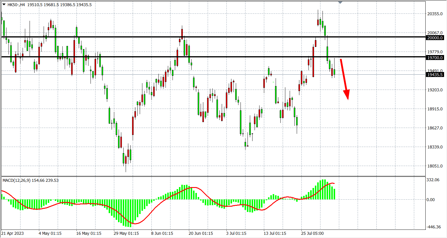 交易策略:19700    下方看跌,目标 19200  18900
