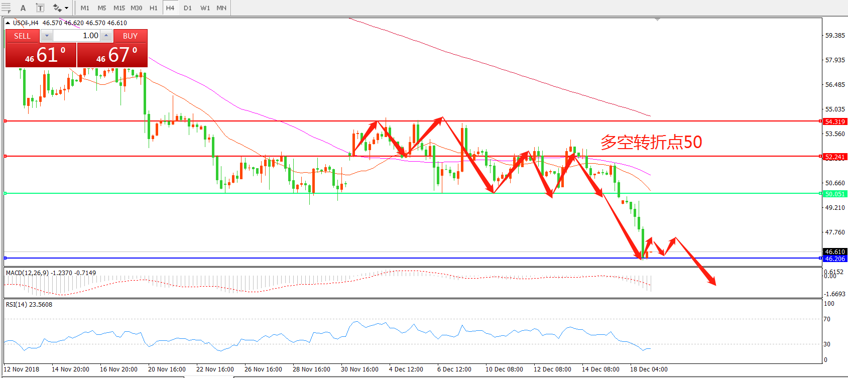 交易策略:在50之下看跌,目标46.00   42.00