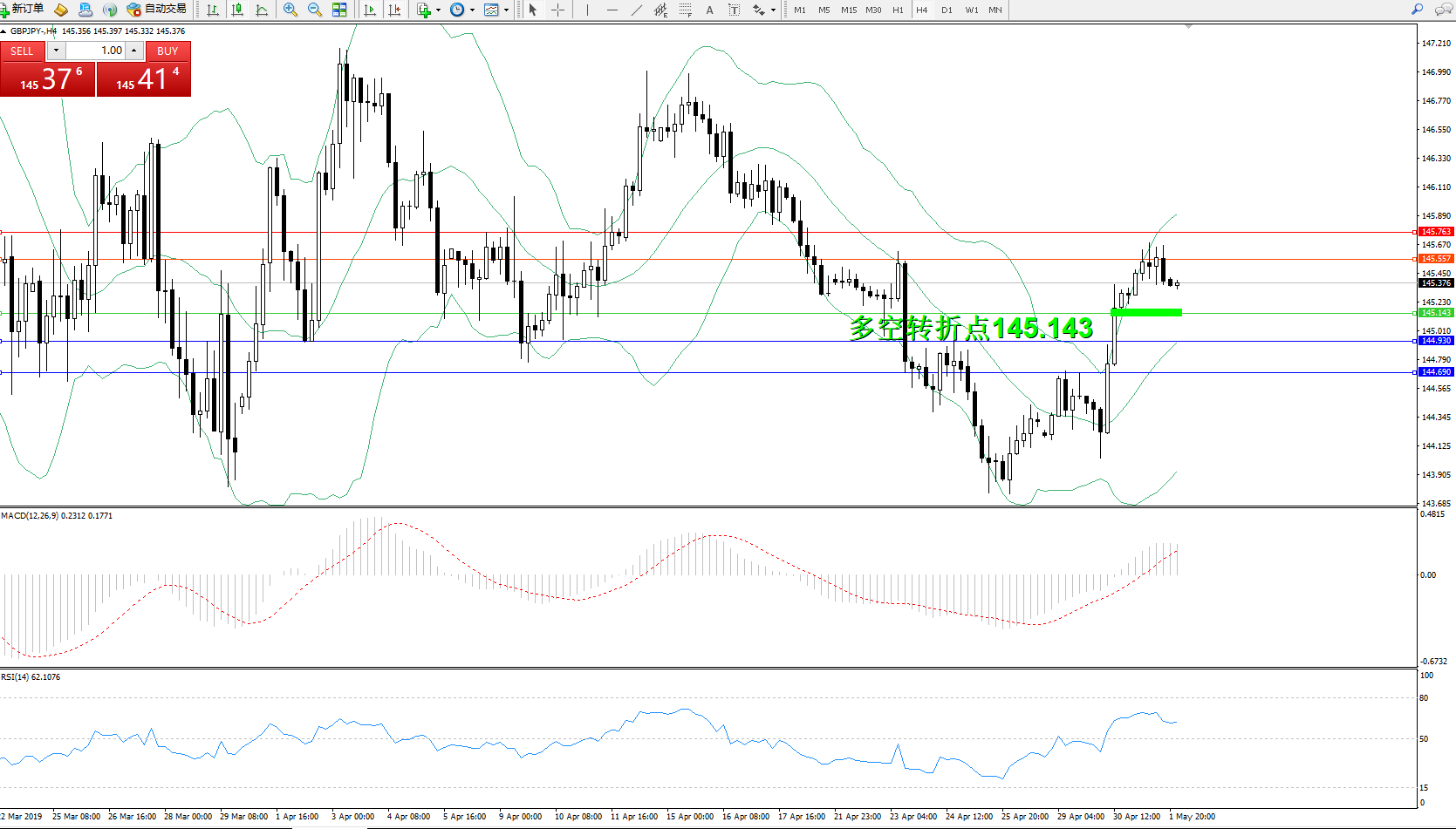 交易策略:145.143上方看涨,目标145.557145.763