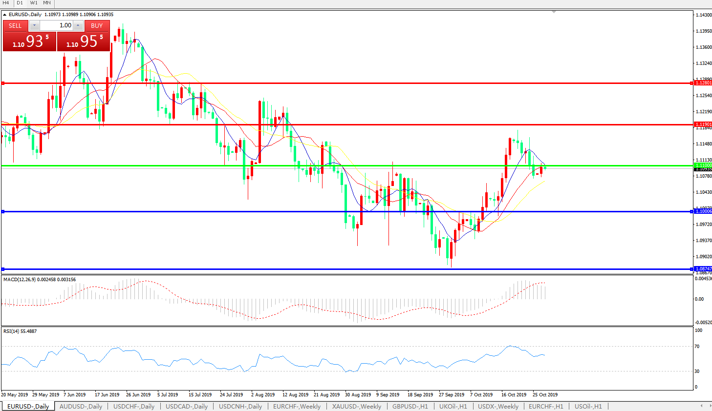 英镑兑美元汇价在周一欧市盘初拉升走高,因欧盟各方已经就允许英国延期脱欧至2020年1月31日达成基本共识,这将彻底消灭在本周四(10月31日)发生“硬脱欧”的可能性,因此投资者情绪终于重新好转; 此前,在上周后半段,受英国延期脱欧及提前大选不确定性影响,英镑汇价曾在创下5个月高位后持续回落,因市场顾虑重新萌生。但眼下,再度延期脱欧似乎大局已定,而英国首相约翰逊也已服软,表示愿意以在12月重新大选为交换筹码,同意在10月31日暂不立即脱欧; 这使得投资者在欧盟官员点头后,开始关注日内英国方面就提前大选进行的表决,而无论如何,短期内英国已经不会无协议脱欧,并且市场押注该国在大选后有望产生一个更加有力的新政府,来为进一步脱欧谈判铺平道路。相关预期在推动英镑反弹至1.2850附近区间的同时,也带动欧元上行重新逼近1.11关口