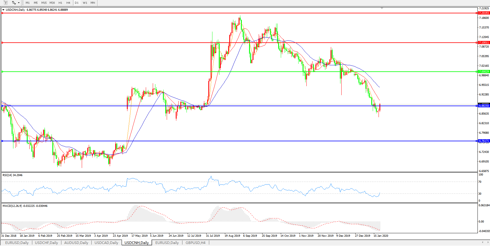 美元兑人民币USDCNH    日线图: