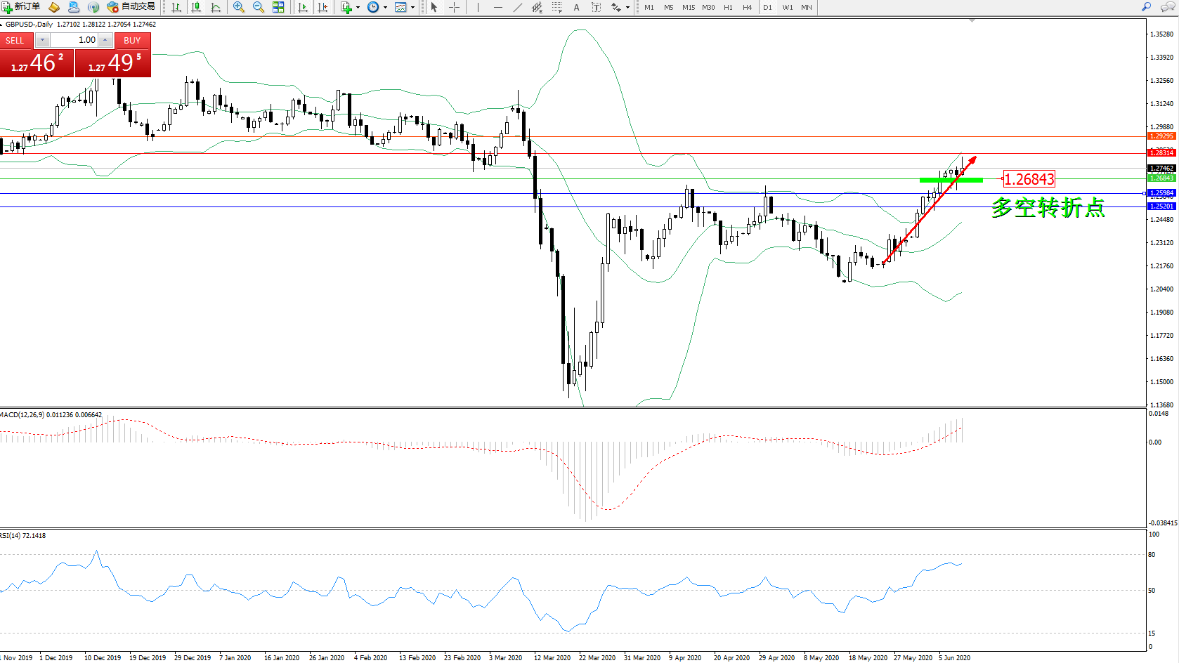 交易策略:1.26843上方看涨,目标1.283141.29295