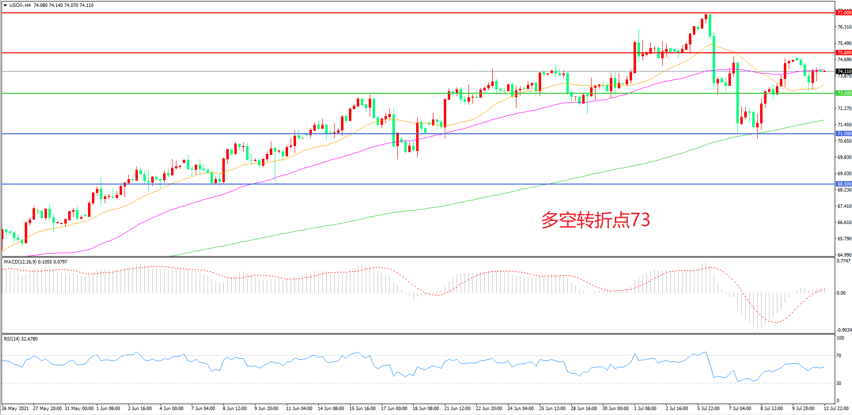 多空转折点:73.00