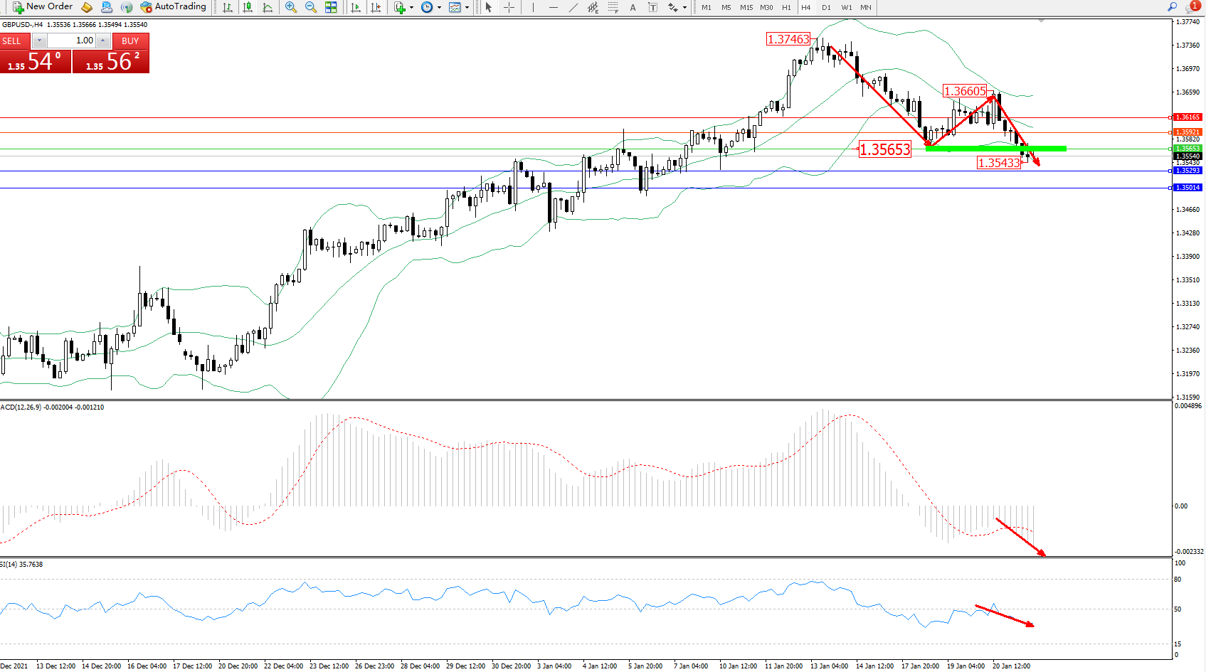 交易策略:1.35653下方看跌,目标1.35293、1.35014
