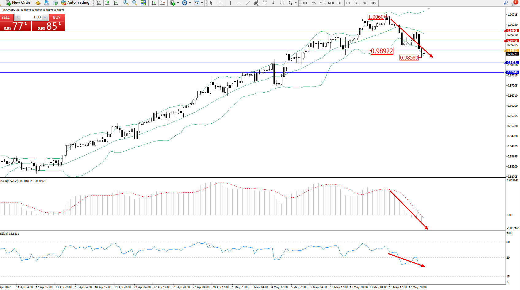 美元瑞郎USDCHF——4小时K线图显示: