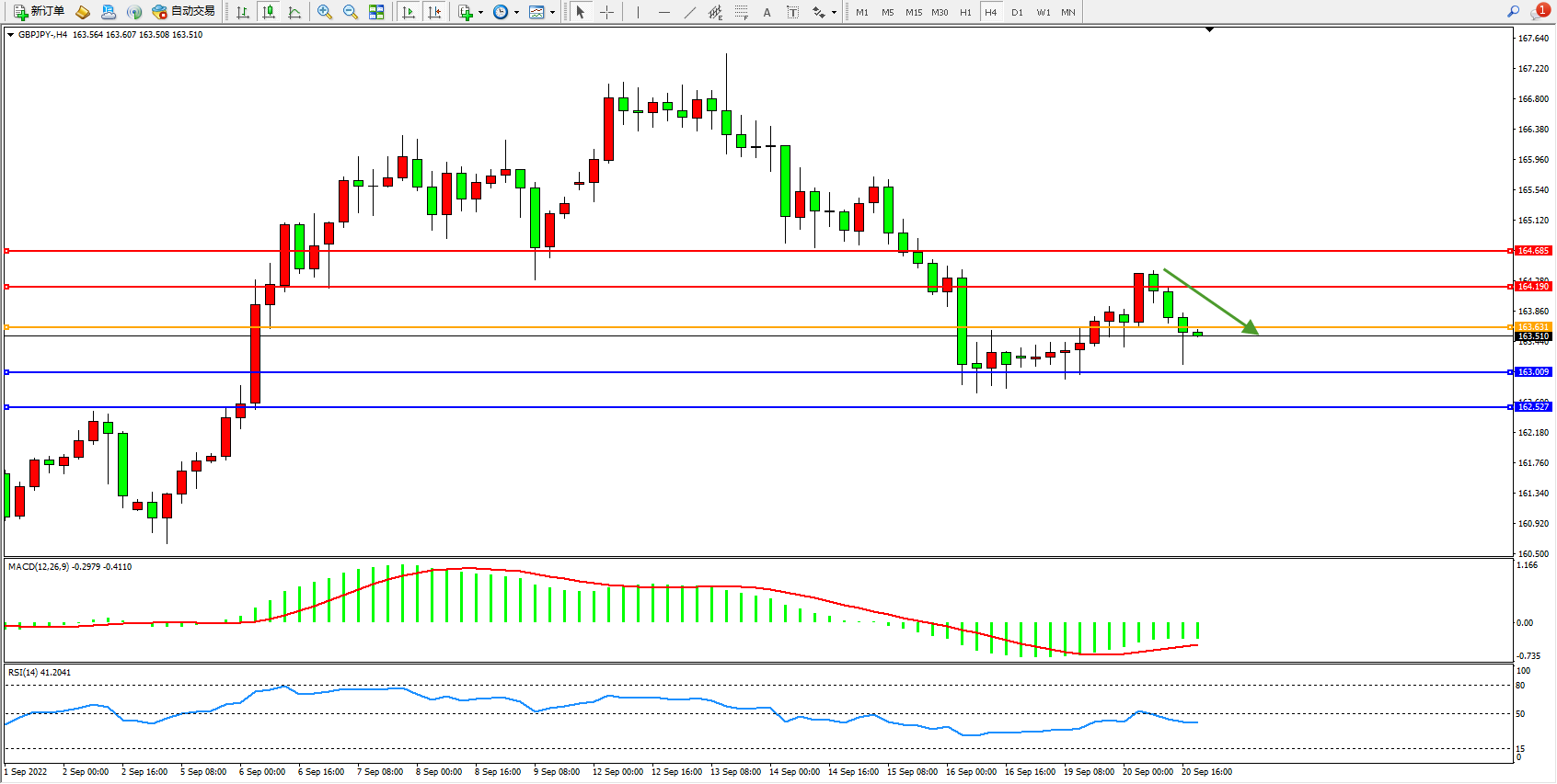 交易策略:163.631下方看跌,目标163.009、162.527
