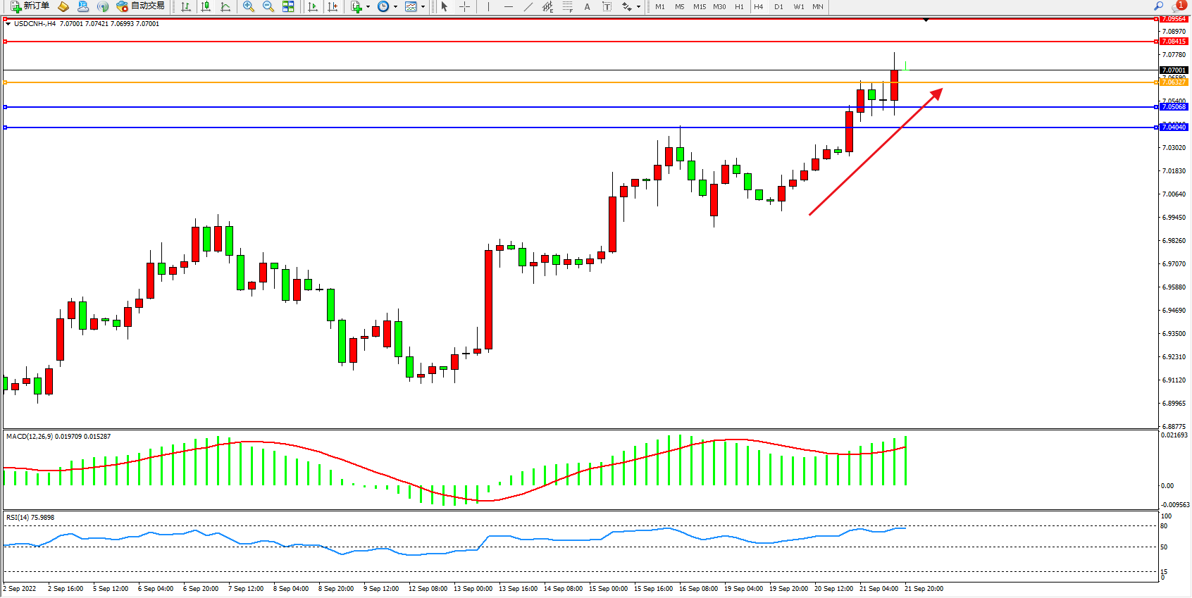 人民币:多头震荡拉升 USDCNH  HKDCNH