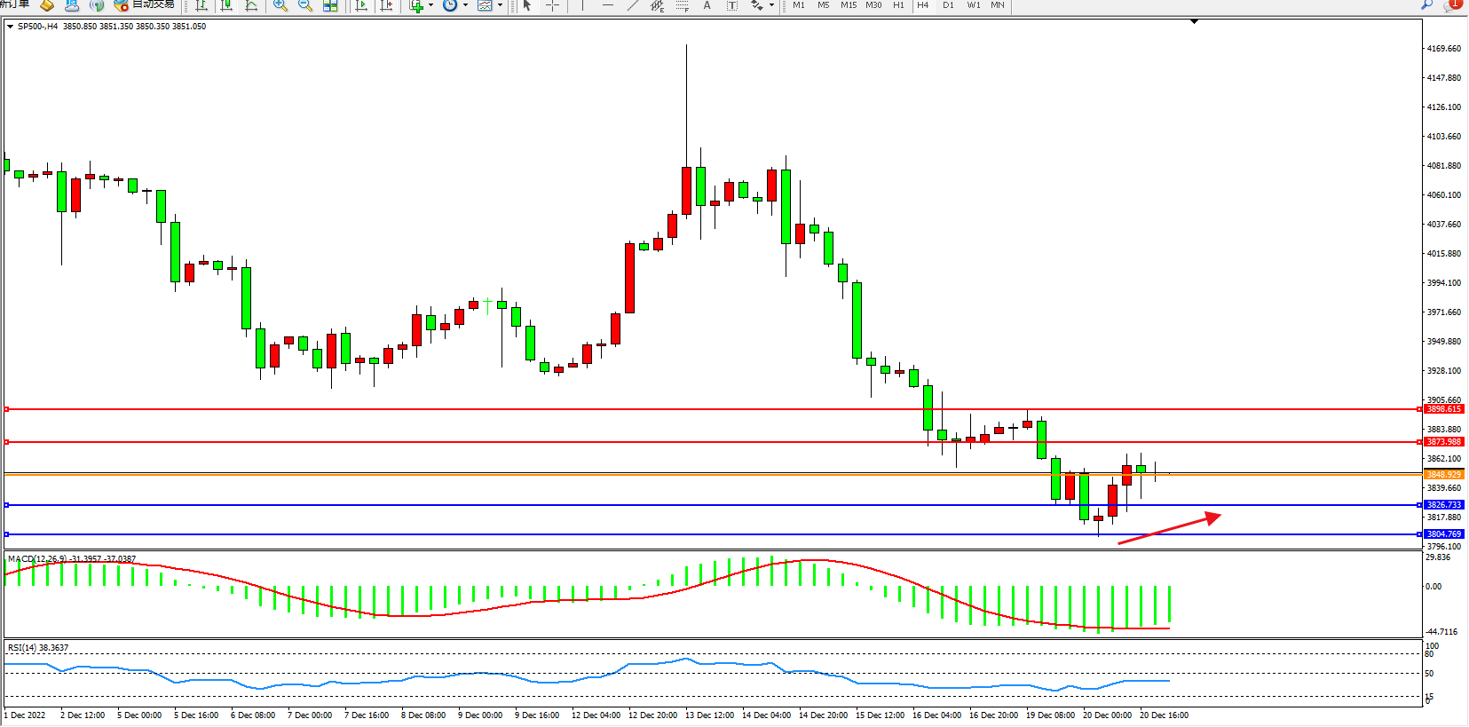 标普SP500——4小时K线图显示: